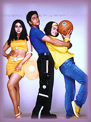 Movie Review | It's the deadliest beginning a Hindi film has had in the last few years. Karan Johar, self-confessed hankie-movie addict, goes straight for the tear ducts, in the first 15 minutes of his first film, Kuch Kuch Hota Hai. He succeeds. And how! Tina (Rani Mukherjee) is dying, handing over her week-old baby to husband Rahul Khanna (Shah Rukh Khan, not Rahul Khanna). She gives her mother-in-law eight letters about herself, to be delivered to the child, on eight consecutive birthdays. That done, she cops it. Leaving husband, mother-in-law and you, in tears. Cut to the eighth birthday. And the last letter. Which tells little Anjali (precocious Sana Saeed) about what a great time her parents had in college. And about Rahul's 'college ke pehle hi din se' best friend, Anjali (Kajol). Flashback to a Riverdale type college, complete with a Weatherbeeish principal - Mr Malhotra (no first name, played by Anupam Kher). Anjali and Rahul are best friends. Anjali is the typical tomboy, who beats Rahul at every game of basketball. Enter Tina, the principal's daughter. Rahul, skirt-chaser in general, flips for Tina and falls in love for the first time. Complications follow. Anjali, only best buddy to date, begins to harbour feelings for Rahul. While Rahul gets certain about his feelings for Tina. In a brilliantly executed scene, Anjali decides to don makeup, to look as `feminine' as Tina, but ends up as the laughing stock of the college. Classic Hindi movie situation. The day Anjali decides to tell Rahul that she loves him, he wants to tell Anjali that he is going to tell Tina that he loves HER. Rahul speaks first. Anjali makes a face, shuts up, and leaves town. Leaving Rahul for Tina and a red dupatta. Some symbol that's never explained. The last letter ends with Tina, telling little Anjali that she must get Rahul and the other Anjali together. The slightly laborious second half of the film focuses on how an eight-year-old, with some help from her grand mother and no help from a twisted fellow, Mr Almeida (Johnny Lever), gets the two to fall in love at a children's summer camp. There is a twist in the tale, with Salman Khan - pre-black-buck days - in a special appearance. [But, I'd much rather not spoil the fun for you.] The story is pretty much let's-please-all-the-people-all-the-time. What wins the day for Kuch Kuch..., easily one of the best movies of the year, is the conviction with which it's made. Young Karan Johar knows his Hindi cinema inside out and makes full use of it. The first half of the film - the college bits - are breezy and fantastic. The screenplay moves at breakneck speed, aided by some taut editing. Only in the second half, the film spins out of control. Ironically, it's this half where the script had more potential. Karan Johar is a director in command. The fact that he has also written the story, screenplay and dialogue, helps. Lusciously shot by Santosh Thundyil, the film has sets by Sharmishtha Roy. The kind you want to keep looking at, if you ever get bored with the actors. Which is a possibility, with Shah Rukh Khan hamming to the hilt. But Rani Mukherjee looks like a million bucks and stands her ground among a talented cast. And then there is Kajol. So exceptionally natural, that it's a brilliant performance, even by her standards. And if you need another excuse to see the film, there is the child actor, Parzan Dastur. Doesn't speak a word, but conveys a thousand words with his eyes. Makes you very Khush Khush about Kuch Kuch... Music Reveiw THE MUSIC REVEIW IS BEING RE-VAMPED! AND IT WILL BE AVAILABLE SOON